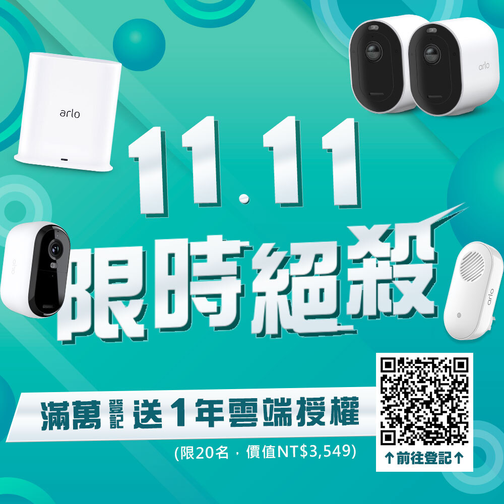 貼心小提醒:購買即贈 Arlo 30天雲端服務,過期後需付費訂閱才能啟用Arlo smart 功能,繼續使用雲端保存服務。